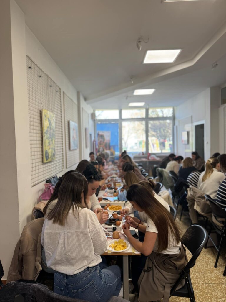 Družimo se. Grupe nam traju po dva, dva i po sata, mislim da sve učesnice radionice uspiju bar po šest